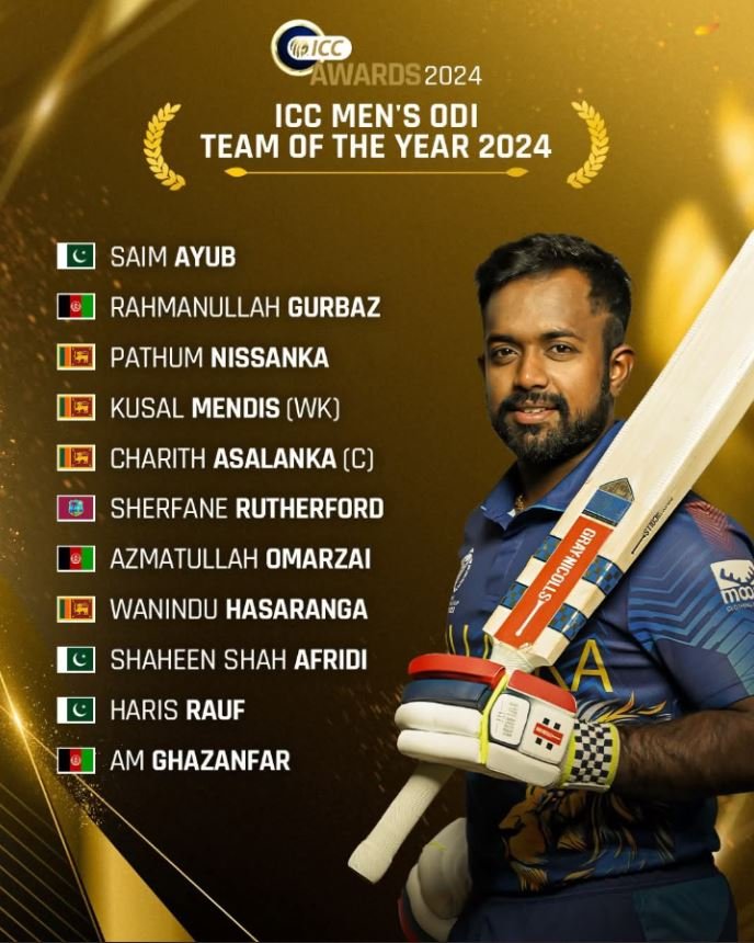 دبئی : آئی سی سی مینز ون ڈے ٹیم آف دی ایئر کا اعلان، 3 پاکستانی شامل، بھارت کا کوئی کھلاڑی جگہ نہ بناسکا۔ ون ڈے ٹیم آف دی ایئر میں پاکستان کے 3، سری لنکا کے 4، افغانستان کے 3 اور ویسٹ انڈیز کا ایک کرکٹر شامل ہے ۔ پاکستان کے صائم ایوب، شاہین آفریدی اور حارث رؤف کو اس ٹیم میں شامل کر لیا گیا ہے ۔ اس کے علاوہ افغانستان کے عظمت اللّٰہ عمرزئی، رحمان اللہ گرباز، اے ایم غضنفر اس ٹیم کا حصہ بننے میں کامیاب ہو گئے ہیں ۔