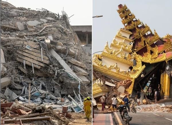 بینکاک : میانمار میں 7.7 شدت کے زلزلے کے بعد آفٹر شاکس کا سلسلہ جاری ہے ۔ زلزلے کے بعد لاکھوں افراد نے رات کھلے آسمان تلے گزاری ۔ ہولناک زلزلے سے بنکاک بھی دہل گیا۔ زلزلے کا مرکز میانمار کے دوسرے بڑے شہر منڈلے کے قریب تھا اور جس کی گہرائی زمین میں محض دس کلومیٹر تک تھی۔ متعدد رہائشی عمارتیں ملبے کا ڈھیر بنی ہوئی ہیں ، ملبے تلے لاشوں کی تلاش جاری ہے ۔ زندگی کے امکانات معدوم ہو رہے ہیں ۔ شہرکا انفراسکچر بری طرح تباہ ہو گیا ہے۔ میانمارکی فوجی حکومت نےچھ علاقوں میں ایمرجنسی نافذکی ہے اور عالمی برادری سےامداد بھی مانگی ہے ۔ زلزلے میں ایک مسجد کا کچھ حصہ بھی منہدم ہوگیا جس کے نتیجے میں 3 نمازی جاں بحق جبکہ چھ زخمی ہو گئے ۔ اسی طرح مندروں کو بھی نقصان پہنچا ہے ۔