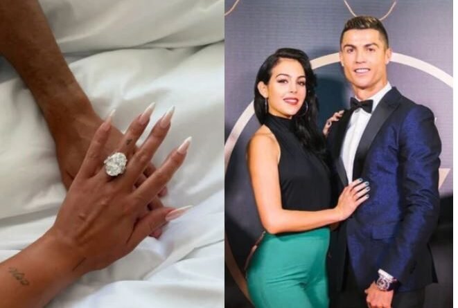 لزبن : پرتگالی اسٹار فٹبالر کرسٹیانو رونالڈو نے 8 سال ڈیٹنگ کے بعد اپنی گرل فرینڈ جارجینا روڈریگز سےآخر کار منگنی کر لی ہے۔40 سالہ رونالڈو نے اپنی ہسپانوی محبوبہ جارجینا کو ایک قیمتی ہیرے کی انگوٹھی پہنائی اور رسمی طور پر شادی کی پیشکش کی جسے انہوں نے فوری قبول کرلیا ۔ جارجینا نے اپنے انسٹا گرام پر انگوٹھی کی بھی تصویر شیئر کی ہے ۔ جس میں دیکھا جا سکتا ہے کہ رونالڈو کاہاتھ بھی ان کے ہاتھ میں ہے ۔ انہوں نے بڑے سائز کی ہیرے کی انگوٹھی پہن رکھی ہے ۔ واضح رہے کہ دونوں نے ڈیٹنگ آٹھ سال قبل شروع کی تھی ۔ جب جارجینا میڈرڈ میں ایک فیشن برانڈ کے آؤٹ لیٹ پر ملازمہ تھیں اس ملاقات کے بعد دونوں کو 2017 میں پہلی مرتبہ ایک ساتھ دیکھا گیا تھا۔خیال رہے کہ رونالڈو اور جارجینا کے پانچ بچے ہیں جن میں دو جڑواں بچوں میں سے ایک اپریل 2022 میں انتقال کر گیا تھا۔